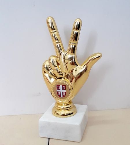 Figura FG111CENA 875,00 RSDŠifraVisinaCenaPostoljeFG11117 cm875.006 x 3 cmFigura tri prsta – SRBIJALogotip na figuri po izboru kupcaPostolje od mermernog kamena. RSD Pločica sa tekstom na peharu *Cena po komadu Izaberite opcijuBez pločiceSa pločicom [+200,00 RSD] Unesite tekst za pločicu Izbor pisma * Ćirilica Latinica Aplikacija na peharuUnesite sport ili nas kontaktirajte za personalizovanu Figura FG111 količina Dodaj u korpu Vreme isporuke: od 3 do 5 dana, bez vikenda. Troškovi dostave nisu uračunati u cenu. Šifra proizvoda: fg111 Kategorije: Univerzalne figure, FIGURE Oznake: srbija, tri prsta Preporučujemo da pogledate: Figura FG131 CENA 4.985,00 RSDViše informacija Figura FG468 CENA 1.470,00 RSDViše informacija Figura FG409 CENA 2.080,00 RSDViše informacija Figura FG424 i FG425 CENA 630,00 RSDViše informacija Ovaj proizvod ima više varijanti. Opcije mogu biti izabrane na stranici proizvoda.