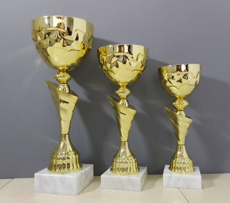 Univerzalni zlatni pehar sa metalnom čašom. Stub od abs-a i postolje od prirodnog mermernog kamena.
